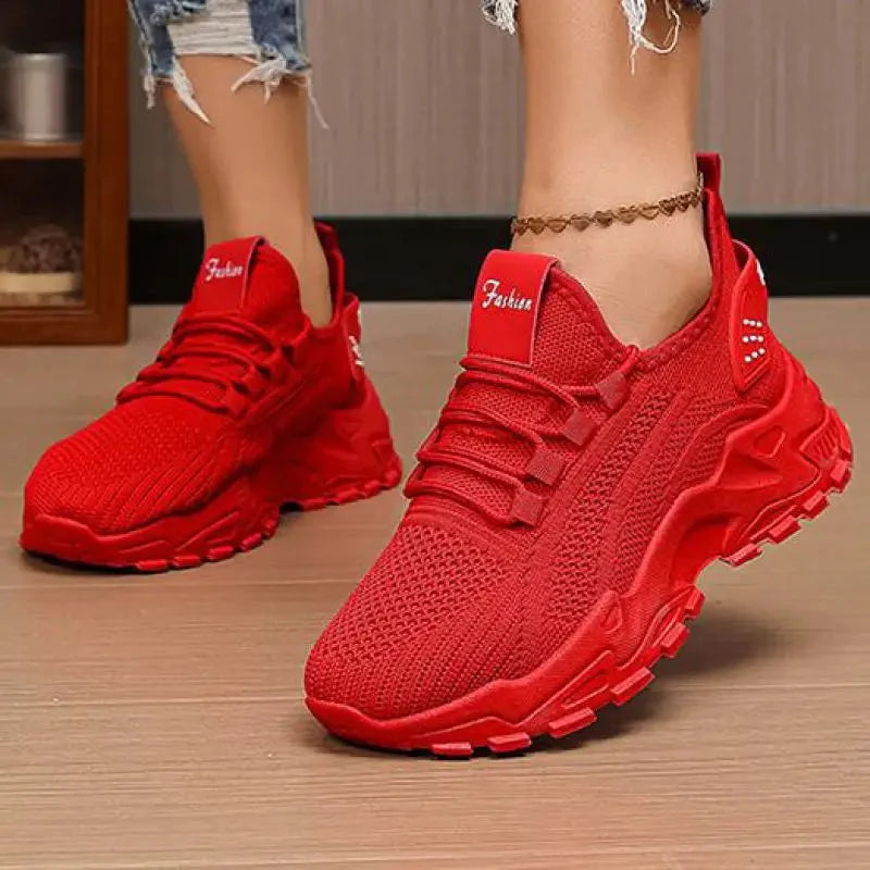 Women’s Lace-Up Shoes with Perforated Side Panel and Thick Sole