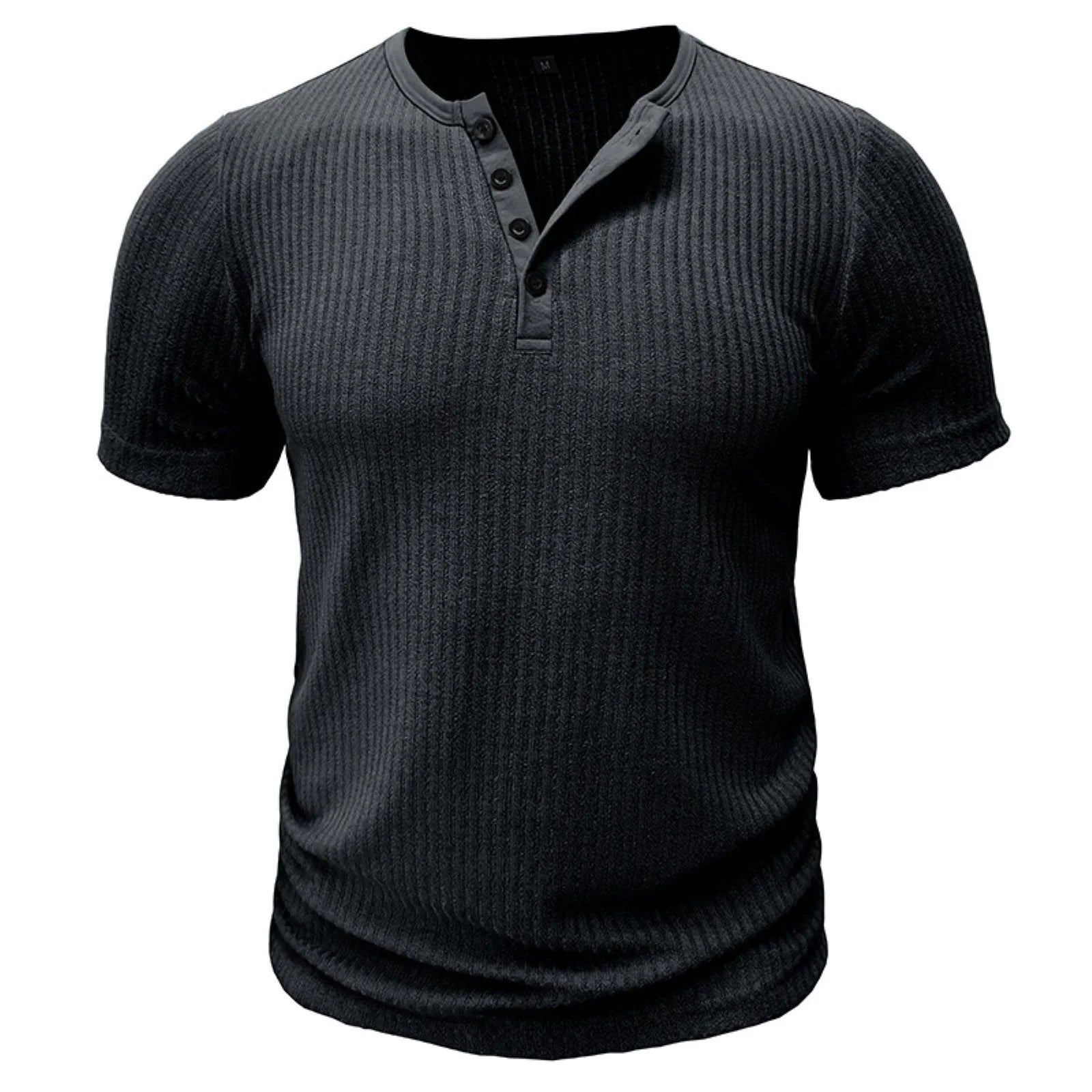 Men’s T-Shirt with Button Placket Ribbed Texture and Short Sleeves